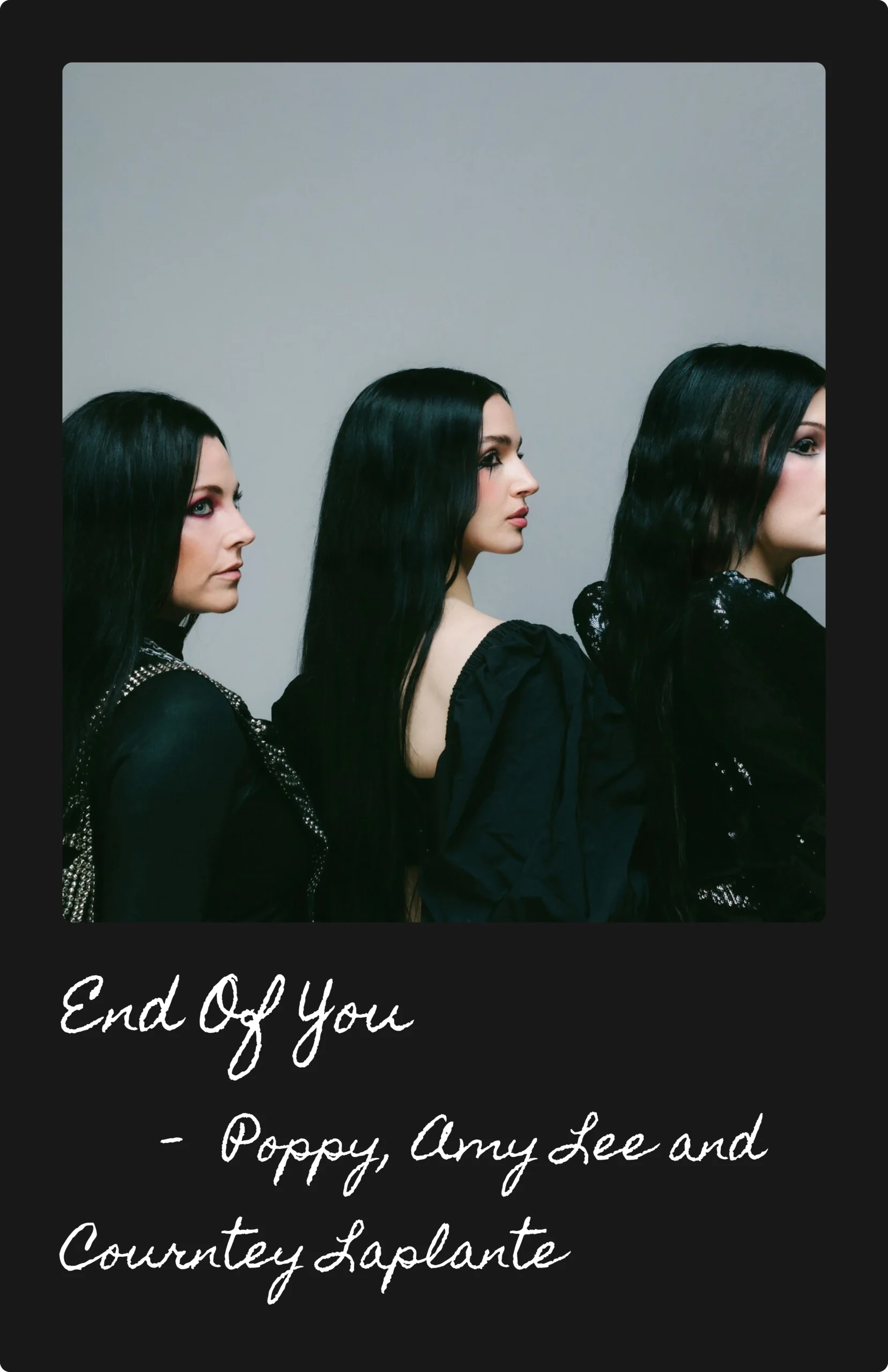 – Listen to End Of You by Poppy ft. Amy Lee, Courtney LaPlante